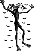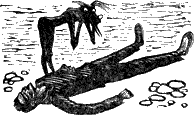 Гаки — большой грешник. По буддийским поверьям, за злые деяния, свершенные в прежней жизни, он должен был страдать от голода. Перед ним появлялись всякие яства, но только он хотел схватить их — они исчезали, как тающий дым. Не похож ли чем-то он сам на этого гаки?!