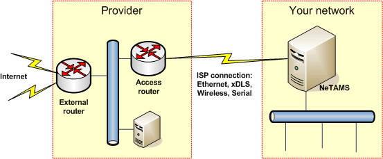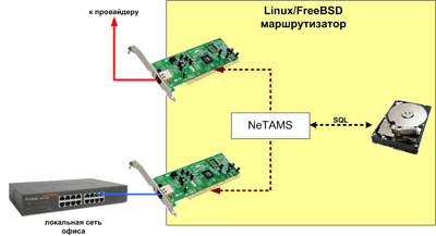 а) вы будете использовать UNIX–маршрутизатор для передачи трафика, и NeTAMS будет установлен на этом же компьютере, или для передачи (роутинга) трафика у вас будет работать отдельный маршрутизатор (PC или Cisco).