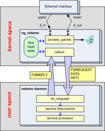 Для FreeBSD придется работать через механизм IPFW/divert socket, для чего ядро должно быть скомпилировано с поддержкой «options IPFIREWALL» и «options IPDIVERT». Убедиться в наличии модулей можно, посмотрев в файл /var/log/dmesg.today и поискав там строки «ipfw initialized, divert enabled, …». NeTAMS работает под управлением FreeBSD с версий 4.х вплоть до CURRENT.