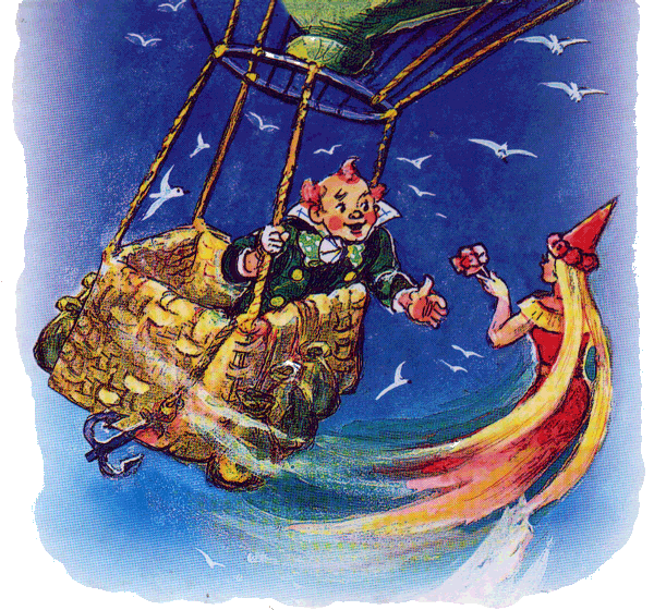 Вдруг он заметил, что среди серых туч появилось маленькое розовое облачко. Оно стремительно приближалось к воздушному шару. Вдруг облачко растаяло, и Гудвин с удивлением увидел порхающую в воздухе волшебницу Стелла. В руках она держала красную розу.