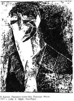 Бенедикт Лившиц с восторгом смотрит на Давида Бурлюка. На его плотоядное, захватническое отношение к жизни, к людям, к искусству. Языческое, хищное, первобытное было соблазнительно утонченному поклоннику новой французской поэзии.