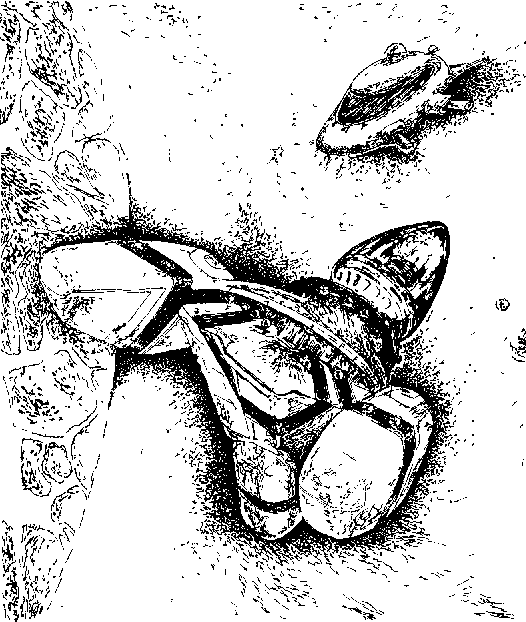 Женщины гибли одна за другой, но к ним подоспели женщины других деревень, прослышавшие об угрозе их благополучию. Они сражались за свои дома и права с женским неистовством, превосходившим самую сильную ярость мужчин. Предмет метал огонь по всей скале, но это только помогало выбивать камни, которые дождем сыпались вниз. Наконец, из нижнего конца предмета вырвалось пламя, он поднялся в воздух. И во время — начался оползень. Предмет поднимался все выше, пока не превратился в точку на фоне большого солнца, а затем исчез.