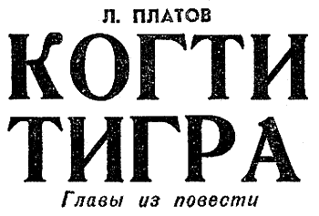 Один из старейших советских писателей-приключенцев, Леонид Дмитриевич Платов, — автор нескольких романов и повестей. Им написаны такие полюбившиеся читателю книги, как «Секретный фарватер», «Страна семи трав», «Архипелаг исчезающих островов» и другие. В настоящее время писатель работает над новой книгой — «Когти тигра». Это повесть о человеке, совершившем замечательный подвиг в годы Великой Отечественной войны. С первой частью повести, рассказывающей о юности героя, о становлении его характера, мы предлагаем познакомиться читателю.