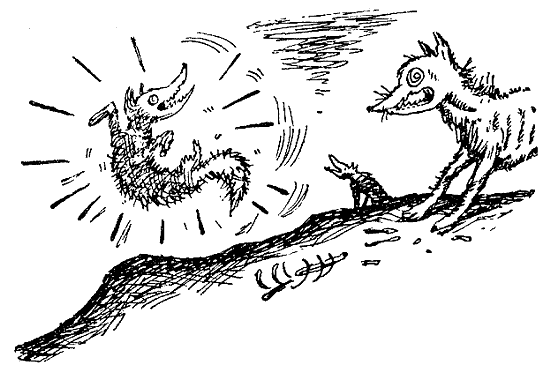 Но вдруг я заметил, что дракон начинает беспокоиться. Сперва он слегка подергивал шеей и хлопал глазами. Затем распушил страшный гребень на хвосте и перегнулся, стараясь ухватить свой зобный мешок, откуда, очевидно, исходила причина беспокойства.