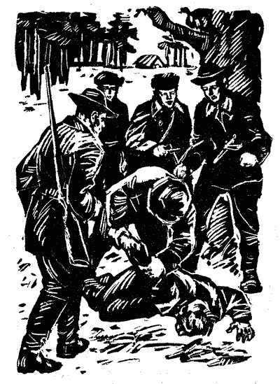 — Ні! — вигукнув адвокат і виступив наперед. — В ім'я закону — ні! Правда, ці злочинці заробили смертну кару. І все ж я прилюдно заперечую проти такого судочинства. Передайте їх мені. Я буду їх звинувачувати перед судом штату, але тут…
