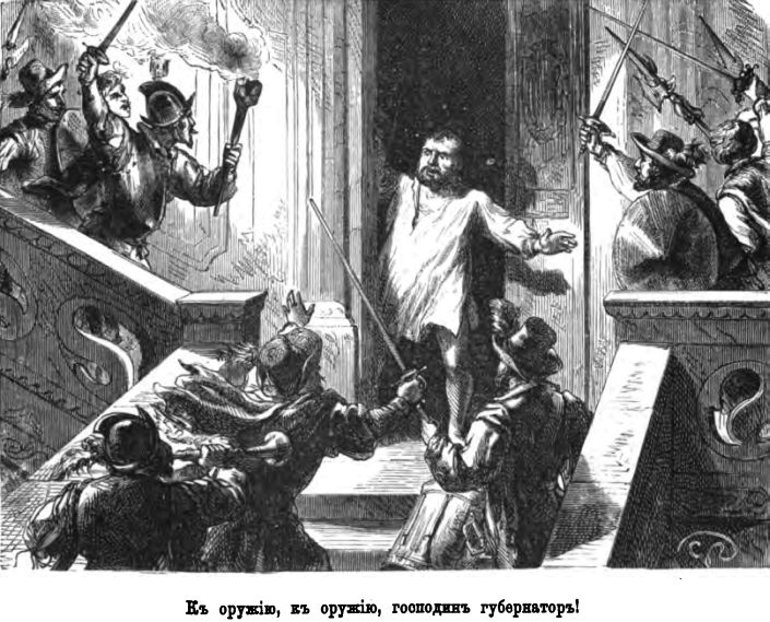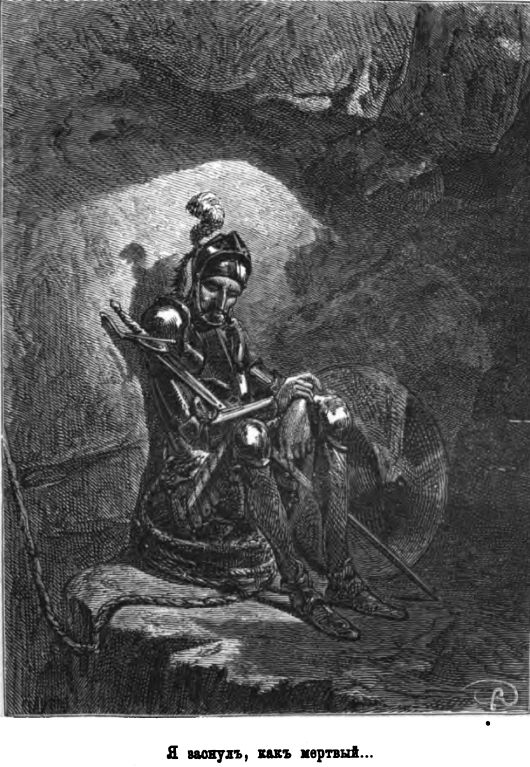 «Остановись, остановись, измѣнникъ! да не коснется меня ничья рука! Мнѣ, мнѣ одному, король мой, предназначено совершить этотъ подвигъ».