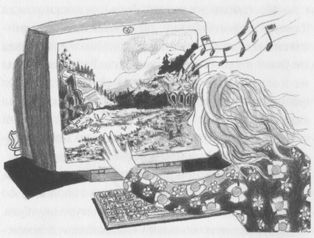 Буквы на мониторе постепенно бледнели, но под ними можно было различить сказочный пейзаж: там над цветами летали крошечные эльфы, а в волшебном лесу скакали единороги.