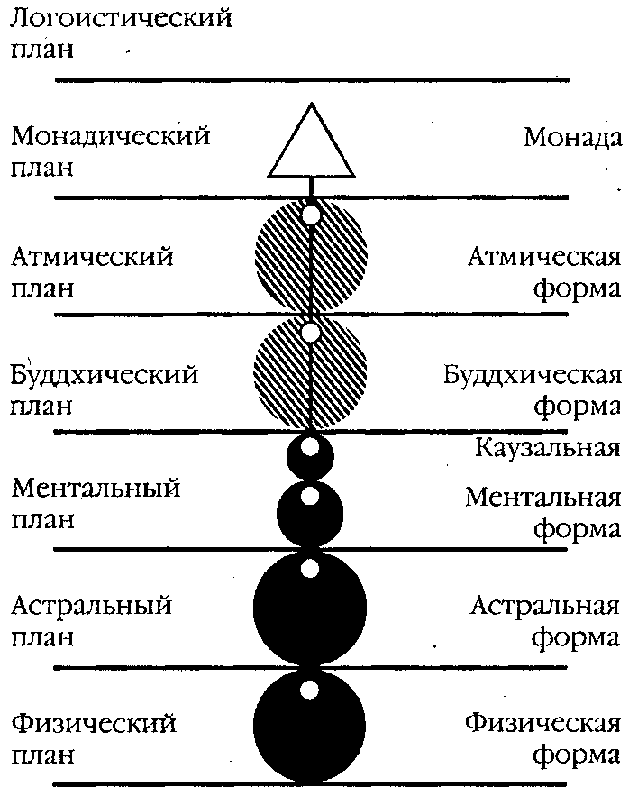 Человек тоже предстает как единство трех начал или как слагаемое трех аспектов — тела, души и духа или, говоря иначе, личности, высшего «я» и монады.