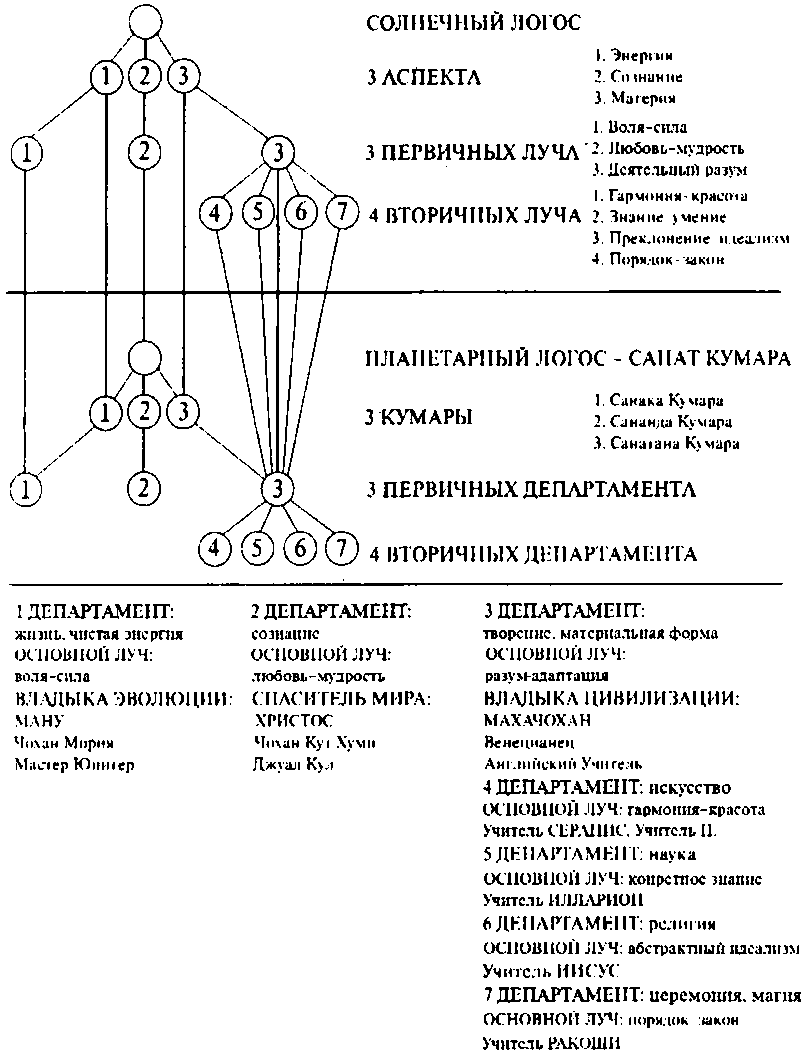 Высший Разум, управляющий Вселенной и проявляющий себя через небесные тела и созвездия, обозначается в теософии греческим словом logos, которое можно перевести как «слово», «мысль» или «разум». Поэтому центральную жизнь и сознание Солнечной системы называют Солнечным Логосом, а внутреннее оживотворяющее ядро, или «божественный разум», каждой планеты называют Планетарным Логосом.
