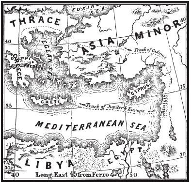Факты, как теперь принято полагать, говорят о том, что за 1500 лет до нашей эры одним из африканских государств правил король, которого звали Агенор. У него была дочь Европа и несколько сыновей. Одного из них звали Кадм. Европа была необычайно красива; приехавший однажды в Африку путешественник и искатель приключений с северных берегов Средиземного моря был так очарован ею, что решил непременно получить ее в жены. Он не решился открыто попросить ее руки, а притворился простолюдином, смешавшись с прислугой на ферме Агенора. Под этой личиной он познакомился с Европой и убедил ее бежать с ним. Парочка переправилась через Средиземное море и добралась до Крита, острова в северной части моря, где они стали жить вместе.