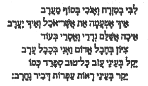 В Царьград он прибыл так, как путешествует всегда: на высоком верблюде, которого кормят рыбой. Животное под ним идет иноходью, и ни капли вина не проливается из чаши, укрепленной в оголовье. С раннего детства Бранкович спит не ночью, как все зрячие, а только Днем, но когда он перевел свои часы и превратил день в ночь — сказать никто не может. Однако и во время своих ночных бдений он не может спокойно сидеть на месте, будто не дает ему покоя чужое горе. Поэтому за трапезой ему всегда ставят две тарелки, два стула и два стакана — среди обеда он часто неожиданно вскакивает и пересаживается на другое место. Точно так же не может он долго говорить на одном языке, а меняет их, как любовниц, и переходит то на румынский, то на венгерский или турецкий, а у одного попугая начал учить и хазарский язык. Известно, что во сне он говорит по-испански, но наяву это его знание тает как снег на солнце. Не так давно кто-то пел ему во сне песню на непонятном языке. Песню он запомнил, и для того, чтобы перевести ее, нам пришлось искать человека, знающего языки, не известные Бранковичу. Так мы нашли одного раввина, и Бранкович прочитал ему на память слова песни. Она короткая и звучит так: