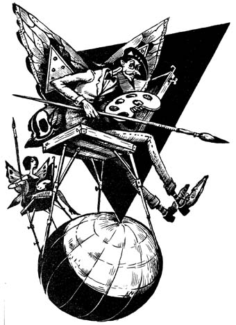 А художники тем временем закончили рисовать, одновременно поменяли кисти и в центре своих холстов провели по три золотистые линии, образовавшие равнобедренные треугольники с устремленными вверх вершинами. После чего переглянулись и по команде-отрыжке смуглолицего одновременно перевернули картины на сто восемьдесят градусов.