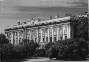водами, располагалось правительственное здание, большой герцогский замок, построенный знаменитым архитектором Растрелли. До сих пор вижу перед собой могучие старые каштаны, стоявшие вдоль берега, и большие желтые кувшинки в воде. И сирень кругом, бесконечная сирень — лиловая, пурпурная, белая.