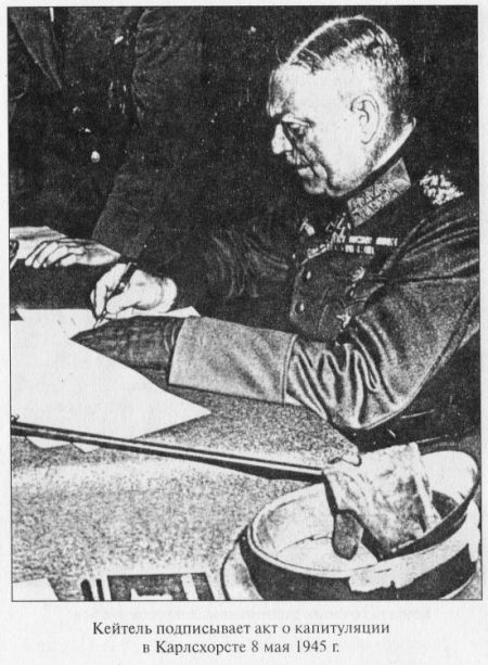 (обратно)Непонятно, почему фельдмаршал говорит о «предварительном акте». Капитуляция вермахта была подписана в союзнической штаб—квартире в Реймсе, но Сталин настоял на повторении церемонии подписания акта о капитуляции в Берлине.