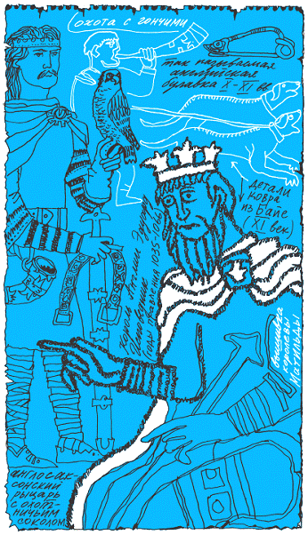 Никогда не слыхавшие ничего подобного, ребята слушали с широко раскрытыми глазами, вприпрыжку поспешая за длинным шагом расхаживавшего взад-вперед старика. Он поправил на ходу отворот кафтана, и квадратная золотая пластинка, украшенная бриллиантами, на мгновение блеснула сквозь мех, как ночная звезда сквозь падающий снег.