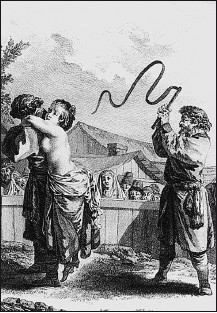 Хазарский воин, ведущий пленника. Рисунок на сосуде IX в.