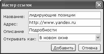 В нижней части окна с помощью соответствующих кнопок вы можете просмотреть ссылающиеся и ссылаемые ссылки, якоря, а также текст выбранной ссылки.