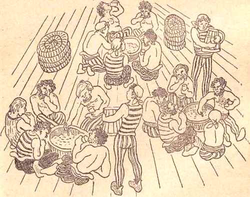 (обратно)Бочка — старинная мера водоизмещения судна, равная примерно двум тысячам килограммов.