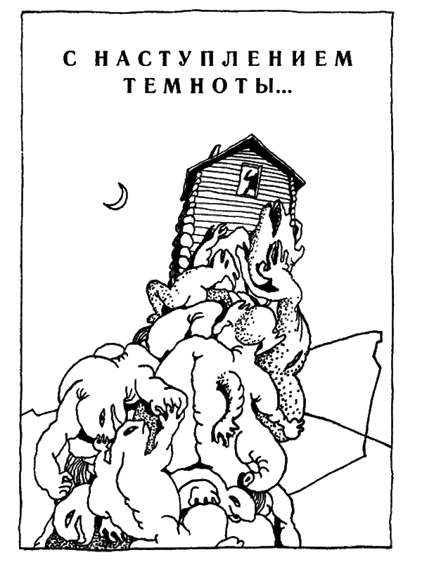 — Эдна! — Улитка заползла ему в рот, и он с отвращением выплюнул ее. Мистер Кнопперт пытался было стряхнуть улиток со своих рук, но вместо каждой сотни, от которой ему удавалось избавиться, на него заползали, казалось, сотни четыре других и вновь облепляли его. Они словно специально стремились к нему как к единственной относительно свободной от их же собратьев поверхности в комнате. Теперь улитки ползли даже по его глазам. Затем, как только он попытался встать на ноги, что-то вновь ударило его — мистер Кнопперт даже не смог разобрать, что это было. Он терял сознание. Так или иначе, но он вновь оказался на полу. Руки его были налиты свинцовой тяжестью, когда он попытался поднести их к ноздрям и глазам, чтобы освободиться от смертельно запечатывающих его улиточных тел.