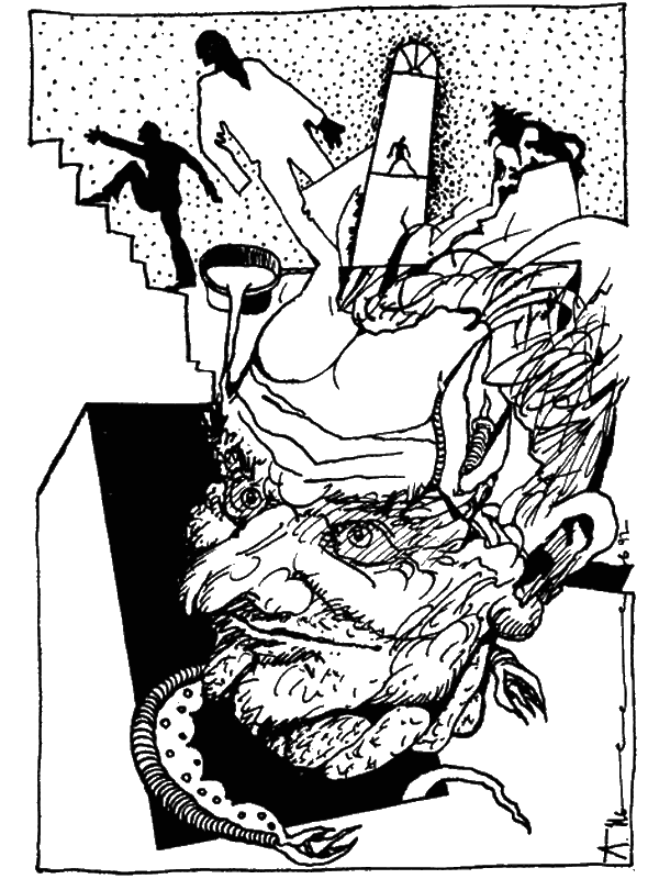 Интересно, слышит ли жена звуки раздираемых стен? Или же до нее доносятся — что хуже, намного хуже — звуки, вырывающиеся из его рычащей пасти? Трудно представить себе что-либо более мерзкое и отвратительное.