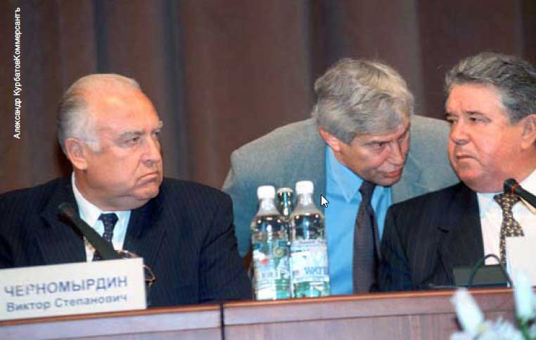 Черномырдин всегда и во всем поддерживал своего преемника Рема Вяхирева (сидит справа) на посту председателя правления «Газпрома». До поры до времени довольно успешно уберегал и от нападок из Кремля и налоговиков.
