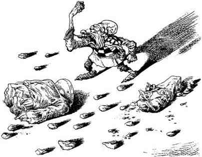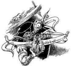 Сердце у него сжалось. От затхлости ему сделалось дурно. Однако, облетев город на небольшой высоте, он не заметил никаких перемен в поведении гоблинов, известных своей жестокостью, никаких следов недавнего восстания. Возле груды сваленных брёвен и подпорок, образующих Санктафраксов Лес, рабы трудились не покладая рук, а гоблины-надсмотрщики командовали, время от времени раздавая несчастным оплеухи и зуботычины.