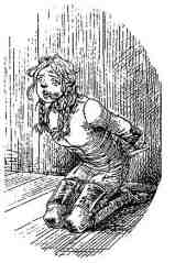 Стражники бросились к пленным, вытащили верёвочные кляпы у каждого и поволокли несчастных к краю площадки. Там на канатах, пропущенных через систему блоков, болталась тяжёлая клеть. Охранники открыли дверь, запертую на щеколду, и впихнули пленников внутрь. Рыжеволосый юноша стоял не шевелясь и гордо подняв голову. Меньший последовал его примеру.