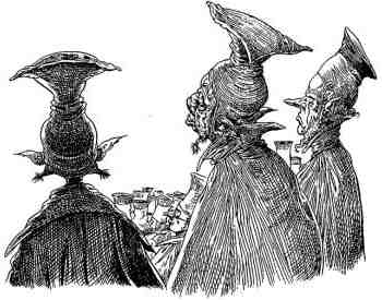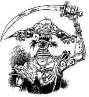 А недругов, не считая Орбикса Ксаксиса, у обитателей подземной канализации было предостаточно: одним из них был жестокий молотоголовый гоблин генерал Титтаг, мечтавший о том, как он железной хваткой возьмёт за горло тех, кто ютится в подземелье Нижнего Города, и тех, кто живёт наверху. Он бы с удовольствием осуществил свои намерения, если бы нападение не было столь опасным. Мамаша Ослиный Коготь, Предводительница шраек из Восточного Посада, также хотела бы уничтожить библиотеку и навсегда разорвать связь между Библиотечными Академиками и своими заклятыми врагами — учёными с Вольной Пустоши.