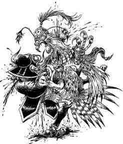 На Дороге через Великую Топь он увидел бесконечные колонны крылатых воительниц. В их сборище чувствовалось что-то зловещее. Судя по сверкающим нагрудным пластинам, начищенным шлемам с пышными плюмажами и множеству устрашающих орудий у каждой шрайки, это было не рядовое собрание клана. Похоже, шрайки объявили мобилизацию.
