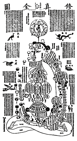 (обратно)Согласно даосскому учению о принципах «внутреннего делания», зародыш бессмертного тела в человеке появляется в том случае, если Вода в теле (символизируемая почками) поднимется вверх и смешается с Огнем, исходящим из сердца. При этом в теле подвижника, уподоблявшемся алхимическому тиглю, сплавлялись воедино различные энергии и состояния духа.