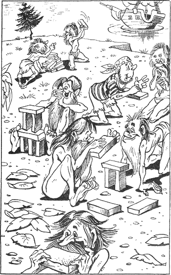 Когда я проснулся, Лидки в каюте не было. Я протер глаза, пригладил волосы и вышел наверх. Солнце уже склонялось к западу. Матросы шумно сражались в карты с бывшими мудрецами и щелкали их по носам колодой. Кирюха по-прежнему сидел в бочке и добросовестно смотрел вдаль. У штурвала стоял Петька. Он уверенно правил, а у капитана был такой невозмутимый вид, будто так и надо. «Неужели Петька умеет?» — подумал я. Мне стало немножко завидно.