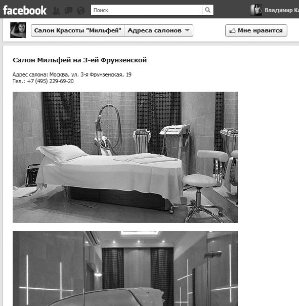 Вкладки представляют собой фотографии, кнопки «Мне нравится», страницу «Welcome». На этой странице есть привлекательная флэш-вкладка, которая презентует услуги, мастеров и контактную информацию, а также краткий прейскурант. Не уходя с Facebook, посетитель может получить всю информацию о салоне и его услугах.