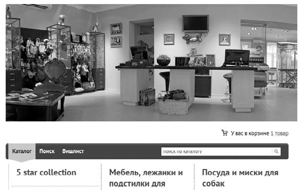 Еще один пример – страница интернет-магазина «Собачья жизнь», который предлагает товары для собак. На обложке изображен йоркширский терьер, который привлекает внимание любителей собак, в особенности представительниц прекрасного пола.