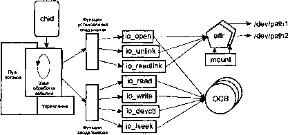 Администратор процессов QNX/Neutrino был разработан с учетом трех основных независимых функций: управление пространством имен путей, создание и управление процессами и управление памятью. Он также поддерживал несколько дополнительных сервисов (/dev/null, /dev/zero, образная файловая система, и т.д.), каждый из которых работал независимо, но все они разделяли общую схему обработки сообщений. Мы нашли эту схему настолько полезной, что решили выделить ее код в отдельную служебную библиотеку. Так появилась библиотека администратора ресурсов (или, как Роб любит ее называть, приводя меня в тихий ужас, «библиотека резмаггера». :-).