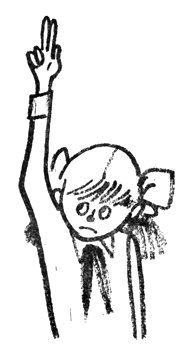 «Буду тянуть руку при каждом вопросе. Я! Я! Я знаю, товарищ учитель. Когда они жили? Откуда мне знать? Я! Я скажу!» И, привстав с парты с поднятой рукой, она кажется натянутой пращей, из которой вот-вот вылетит… ответ.