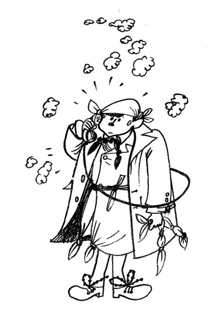Джиджел уходит в школу счастливый. Правда, он опоздал, но не без пользы. К тому же, это в последний раз. И все же его мучит тень сомнения: «А если я потеряю и книжку номер два? Лучше я куплю еще две записные книжки». В книжке номер два он запишет, где держит книжку номер один, а в книжке номер три — где лежит номер два. Но как же запомнить про книжку номер три? Завязать узелок на платке? Написать записочку и приколоть кнопкой к коврику над постелью? Или попросить кого-нибудь из домашних запомнить про нее крепко-накрепко?
