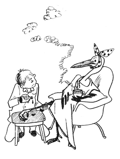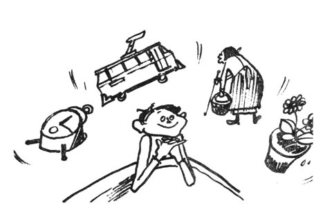 Джиджел взглянул… Ура! Записная книжка там, под будильником. Мальчик радостно схватил ее. Да, в ней все записано! Остальное просто: чулки на батарее, ботинки в кладовке, рубашка на спинке голубого кресла, ранец на вешалке… Джиджел счастлив. Метод не подвел. Опыт удался. За пять минут он был готов. Остался, правда, один нерешенный вопрос, но ведь человек учится всю жизнь…