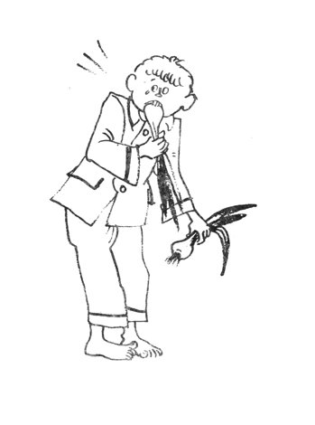 Остальные не он набросал. Разве высокая женщина этого не понимает? Ну и что же, что он, Билибока, — ребенок? Значит, все должны над ним издеваться? Он с отвращением поднимает еще одну бумажку. Потом еще одну. И — упирается. Больше он не желает! Ясно? И бежит прочь, сердито бубня что-то себе под нос.