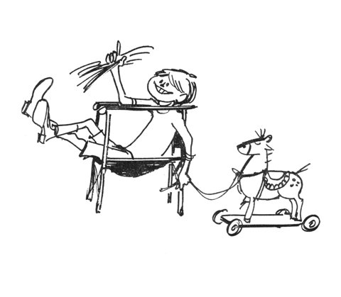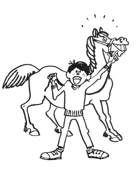 Уже десять часов, после очередной серии телевизионного фильма «Затерянные в пространстве» зевота выворачивает ему скулы, он совсем осоловел и чувствует, что вдавливается в подушку, сливается с матрацем, проваливается в беспредельную бездну. Нет, нет! Без лошади, без лошадки — нельзя! Надо взять ее с собой, схватить за узду и крепко держать, пока он еще не перешагнул порог сна, пока еще не спит.