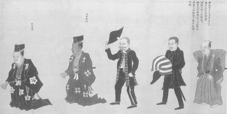 Американская флотилия коммодора Мэттью Перри (1794–1858), которая появилась в заливе Урага неподалеку от Эдо 3 июня (8 июля по григорианскому календарю), состояла из четырех кораблей. Еще восемь осталось в Китае. Задачей Перри было заставить японцев торговать. Он считал свою миссию делом государственной важности, он управлял своими подчиненными железной рукой и даже объявил, что все дневники, которые вели некоторые офицеры, являются государственной собственностью.