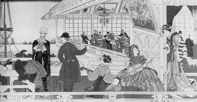 Традиционная японская культура обладала громадным обаянием. Поэтому и Запад стал учиться у Японии. Европейские художники были очарованы японским искусством. Если посмотреть на дело с точки зрения макрокультурной, то столкновение Японии и Запада было подобно встрече разнотемпературных морских течений, когда в зоне контакта создаются благоприятные условия для роста «культурной биомассы».