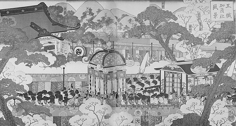 Весь этот ритуальный антураж устраивался под руководством Цутимикадо Харэо (1827–1869), наследственного прорицателя и заведующего астрологической службой двора. Именно он определил с помощью гадания, что плацента должна быть захоронена в синтоистском святилище Ёсида, расположенном на востоке города.