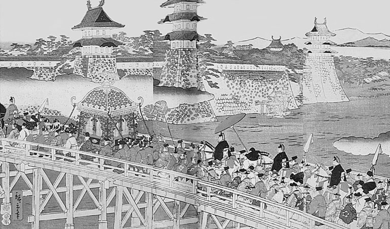 Сёгун жил в своем замке в Эдо, построенном в начале XVII столетия. Стены циклопической кладки окружал широкий ров с водой. Киото предназначался для мирной жизни, там не было оборонительных сооружений. Предназначением Эдо была оборона от возможных нападений со стороны мятежных княжеств. Ров был широким, зато улицы были устроены узкими – чтобы затруднить продвижение конницы потенциального противника. Парадокс состоит в том, что во времена Токугава потенциальный противник ни разу не превратился в противника настоящего.