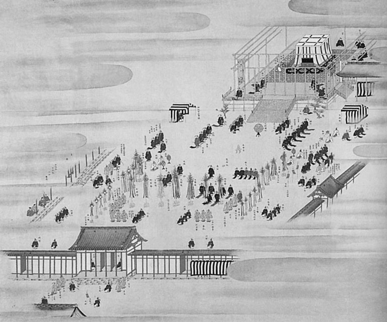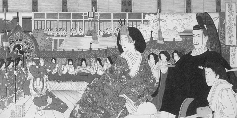 Веками считалось, что главной обязанностью императора и его двора является отправление ритуалов. Такие ритуалы выполняли двоякую функцию. Во-первых, они были призваны оберегать всю страну от бедствий (засух, ливней, тайфунов, землетрясений, пожаров) и обеспечивать благоденствие подданных. При этом никакого участия «народа» в ритуале не предполагалось: чем более тайным был ритуал, тем большей действенной силой он обладал. Эти ритуалы придавали смысл самому существованию двора, знание их мельчайших деталей служило знаком принадлежности к совершенно особой социальной группе. Иными словами, ритуал был для придворных средством самоидентификации, той клейковиной, которая обеспечивала единство древней аристократии.