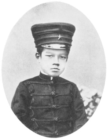 Именно так описывает летопись «Мэйдзи тэнноки» первое свидание между отцом и сыном. Она не делает скидки на нежный возраст сына, который предстает как человек, который в состоянии управлять своим поведением и от рождения знает, что следует преподнести своему отцу[7].