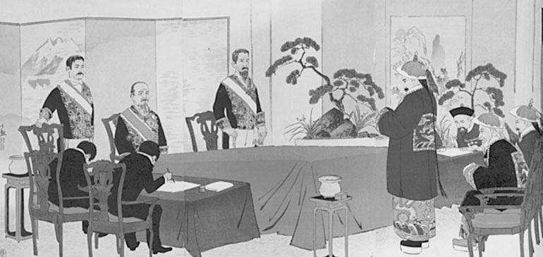 Три века тому назад японцы назвали европейцев «нанбан» – «южными варварами» – ведь они приплывали в Японию именно с юга. Теперь же это были просто «варвары» – они являлись со всех сторон. И все они были христианами. А вера в христианского бога однозначно ассоциировалась с агрессией. Японцы прекрасно знали, что Китай (великий Китай!) на глазах превращается в жалкую полуколонию.