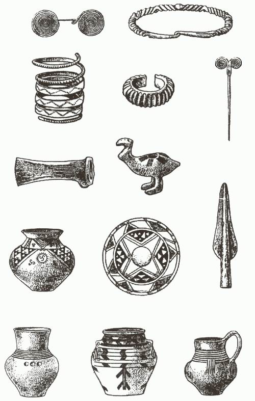 В эту эпоху уже различимы первые этнические и культурные контакты славян со своими соседями. В Судетах, на западных склонах Карпат и на Эльбе бывшие дунайские земледельцы смешивались с другими индоевропейскими племенами, шедшими им навстречу с запада. Это были выходцы из Испании, где в то время процветало меднорудное производство. Не исключено, что их восточная группировка в районе среднего Подунавья была ассимилирована славянами. Племена испанских металлургов снабжали медными изделиями половину Европы и некоторые острова Средиземноморья. Однако культурное первенство принадлежало не им.