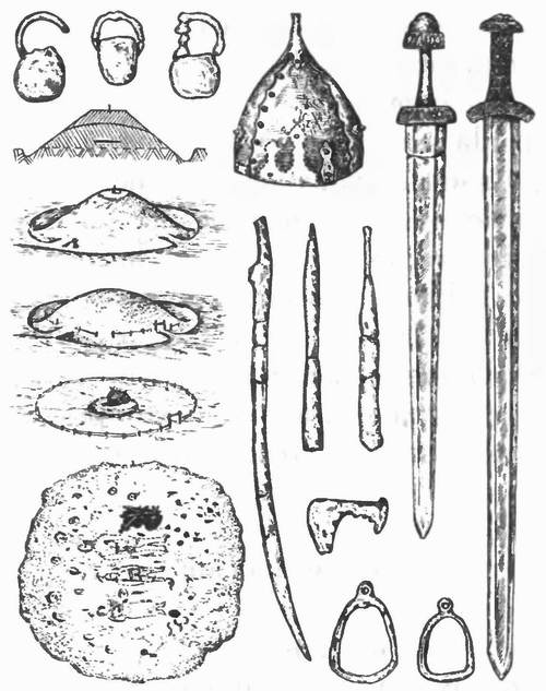 При дальнейшем рассмотрении «древлянского вопроса» несуразности и загадки нарастают как снежный ком. В разительном противоречии с археологической картиной древлянского племенного ареала находятся сведения письменных источников. Летопись сообщает о весьма развитой племенной организации у древлян, которые имели «свое княжение», князей, племенную знать («лучших мужей»), дружину, укрепленные города. Древлянские послы нахваливают Ольге своих правителей, заботящихся об экономическом процветании их страны: «...наши князи добри суть, иже роспасли суть Деревьскую землю» — и это не пустое бахвальство, так как выясняется, что после неоднократных поборов и беспощадного разорения несчастной Деревьской земли киевским войском на «древлян» все еще можно наложить «дань тяжку», что и не преминула сделать Ольга. Военная мощь древлян подчеркнута в летописи упоминанием неких «обид», которые в прошлом претерпели от них «поляне», а также неоднократными попытками порвать узы даннической зависимости от киевских князей. Между тем на археологической карте днепровского правобережья Древлянская земля предстает бедной и малонаселенной областью, безусловно не способной соперничать с соседями в экономическом отношении и тем более находиться с ними в многолетнем военном противостоянии. Древлянские «грады» (Оран, Иваньково, Малино, Городск) имеют площадь около двух тысяч квадратных метров — меньше футбольного поля[70]. А возле Искоростеня Ольга «стоя... лето, и не можащи взяти града»!