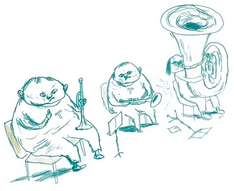 — Упражняюсь, — ответил он. — Я играю на трубе. Нужно все время упражняться. Даже тогда, когда нет трубы.