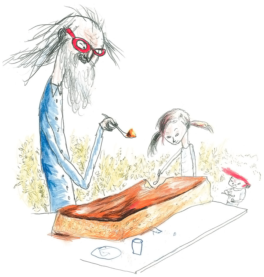 Вечернее солнце лениво освещало грушевое дерево в садике доктора Проктора. Под деревом сидели Булле и Лисе и держались за животы. Вместе с профессором они уничтожили полутораметровой длины пудинг с карамелью и так объелись, что профессор разрешил им немного отдохнуть.
